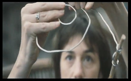 It’s been named “the doom-o-meter” and “mortal coil” by Michael Vazquez of The Huffington Post. I like to call it “the downward spiral.” A rudimentary device crudely fashioned out of wire by a young boy, this apparatus is repeatedly utilized towards the end of the movie and is at firs the source of comfort, and inevitably, dread. It’s method of use is to hold the circular coils to the sky so that it frames the planet Melancholia, thus revealing it’s distance from the planet Earth by its size in relation to the tiny coil. The doom-o-meter spends most of its screen time clutched in the spindly, tense fingers of Claire (Charlotte Gainsbourg), who anxiously peers through the mortal coils only to see that Melancholia is looming larger, and getting closer and closer….